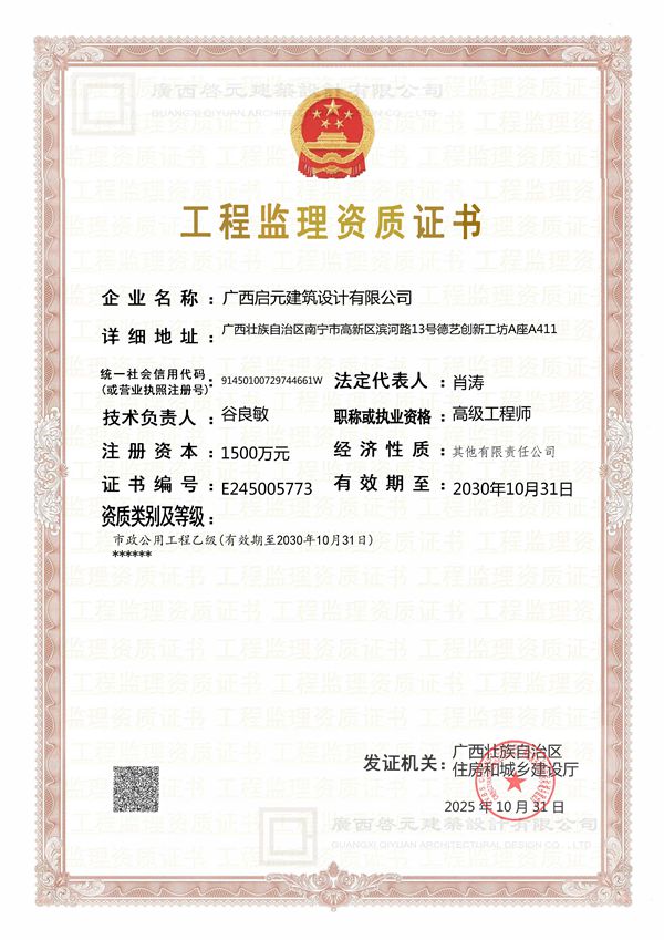 工程设计(市政乙级资质证书)