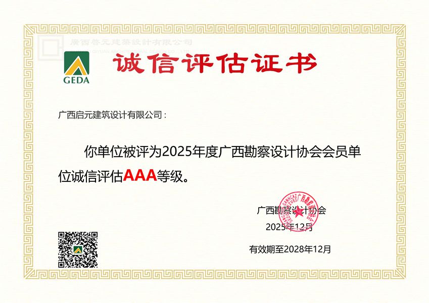 广西勘察设计协会会员单位诚信评估AAA等级